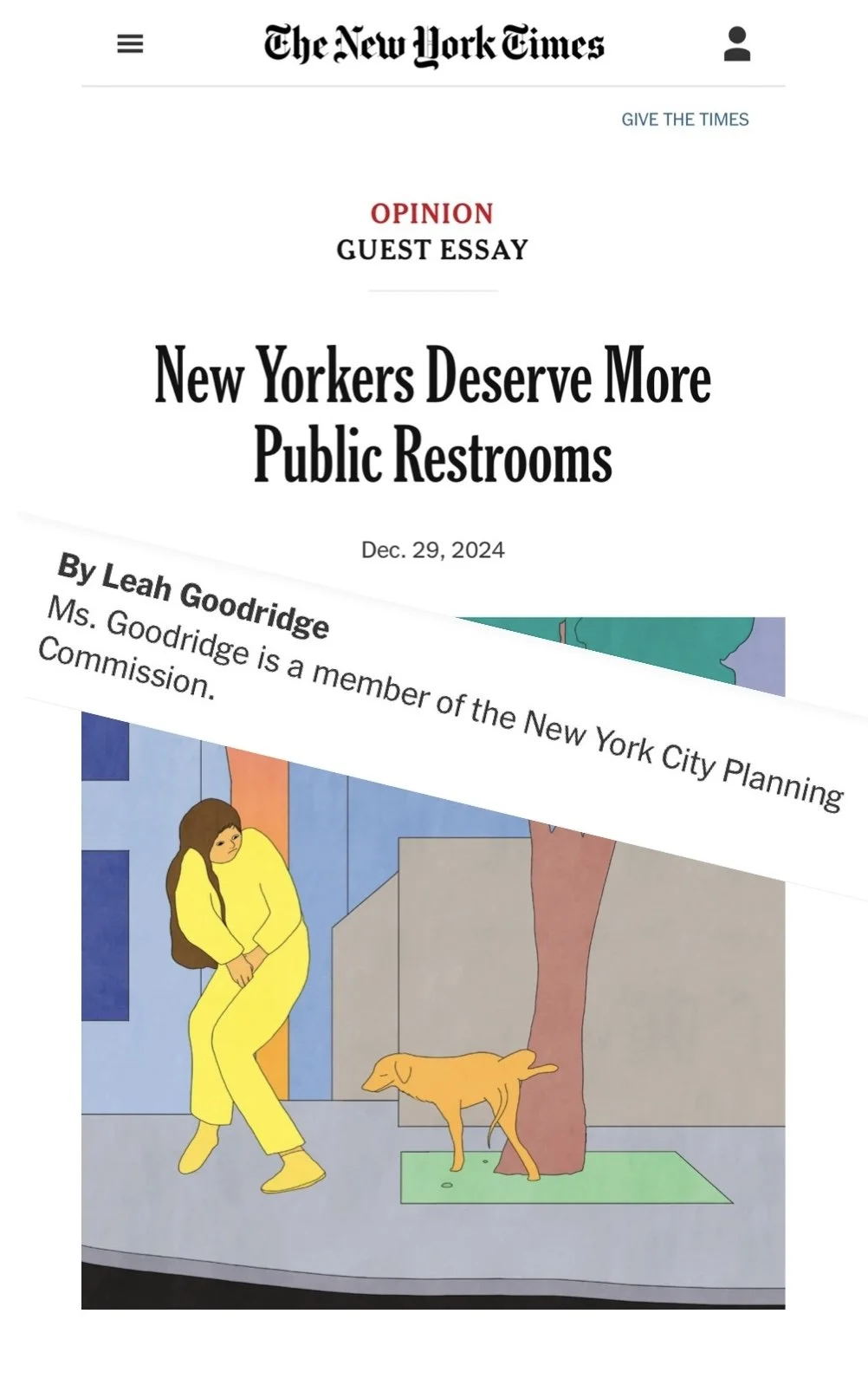 I published an op-ed in The New York Times about two game-changing New York City Council bills that sought to address the public restroom shortage in New York City.